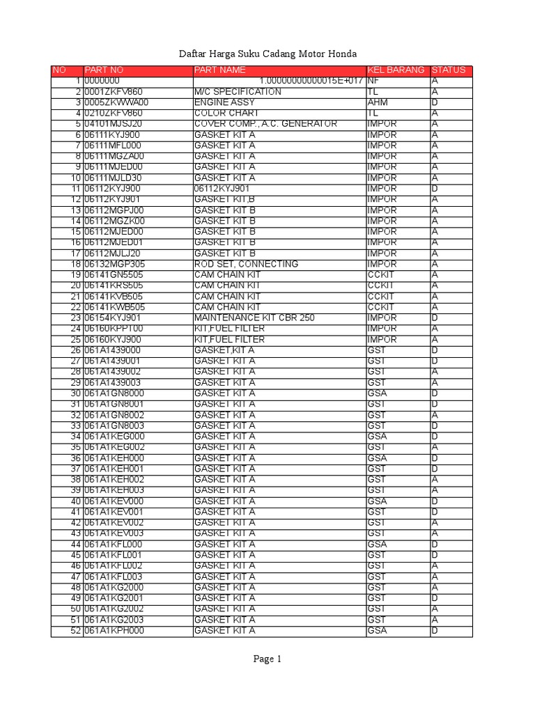 Daftar Harga Suku Cadang Motor Honda Maret 2022 Sumber : www.scribd.com
